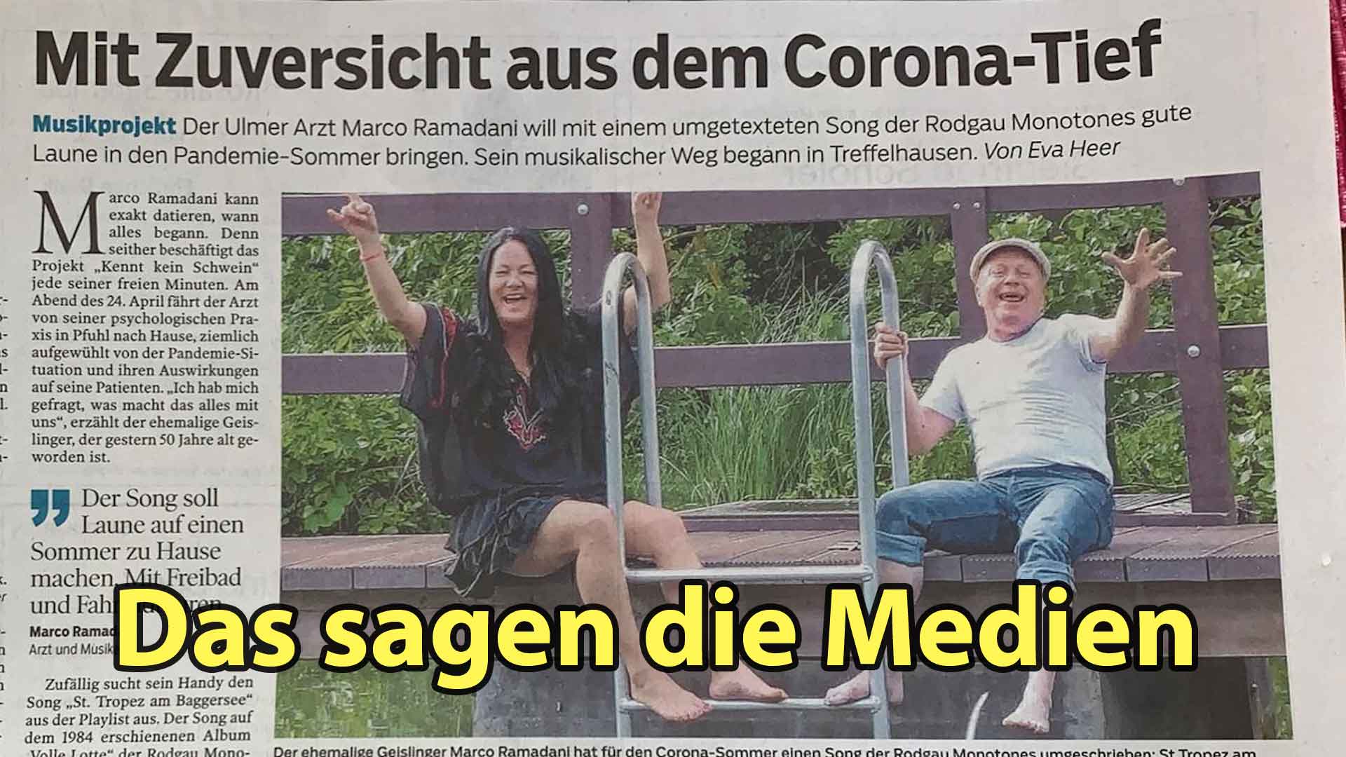 Eines Abends sitzt unser Arzt nun nach einem langen Arbeitstag und nachdem er seine Telefonliste abgearbeitet hat, selbst ziemlich frustriert in seiner Praxis. Diese ganze Infektionsgeschichte ist einfach ungut. Er macht sich Sorgen: Wir brauchen echt wieder einen positiven Impulse, der uns hilft mit dieser Zeit besser umgehen zu können. Und da fällt ihm ein Song aus seiner Jugend wieder ein: "St. Tropez am Baggersee" von den Rodgau Monotones. Auf seinem Nachhauseweg schreibt er den Text des Songs im Kopf um, so dass er für diesen Sommer Lust und Laune macht - auf einen Sommer zuhause, Baggerseen, Camping, Fahrradtouren, Freibäder und Wasserschlachten - eben auf Urlaub, wie wir ihn vor 30 Jahren noch kannten.